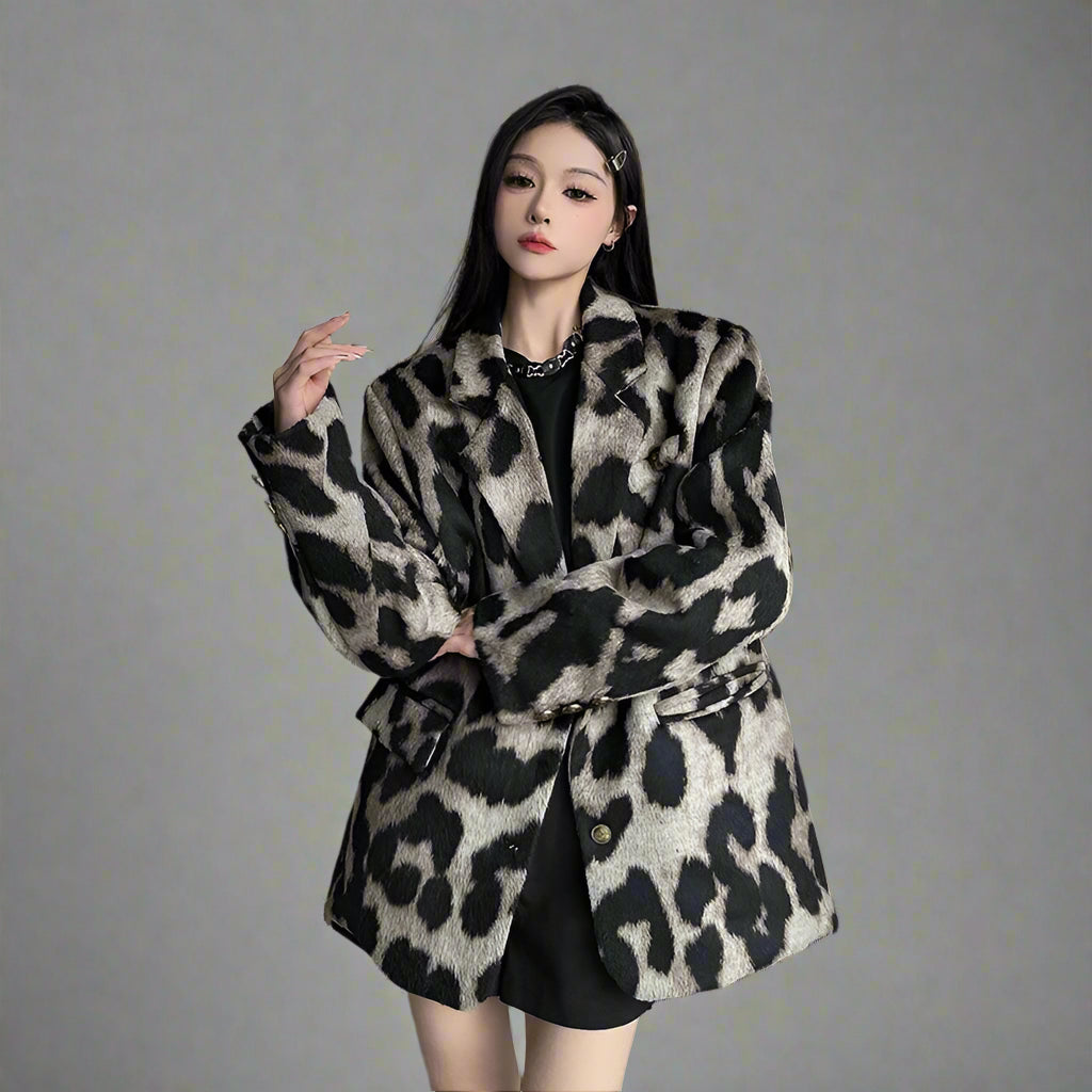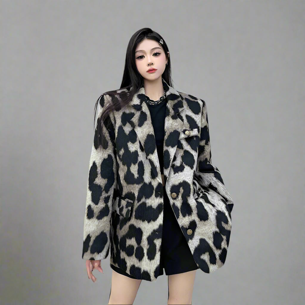 Autumn Winter Solid Color Long Sleeve Double Row Button Blazer Collar Woolen Coat Women -