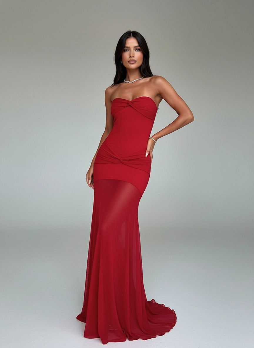 Knitted Wrapped Chest Fishtail Top & Maxi Skirt Set