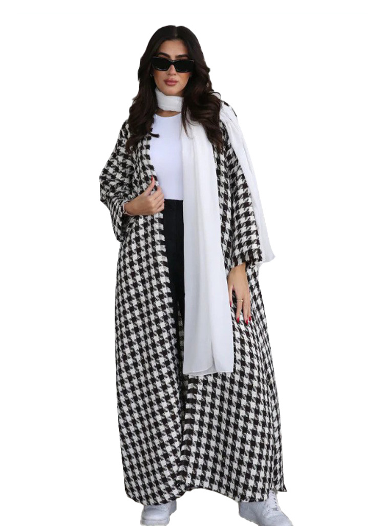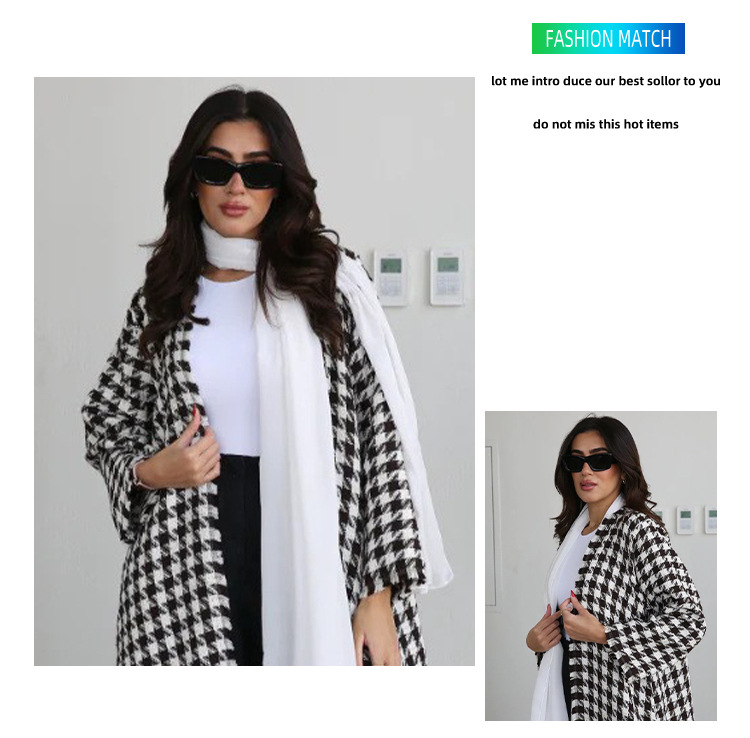 Elegant Casual Houndstooth Cardigan Robe Coat