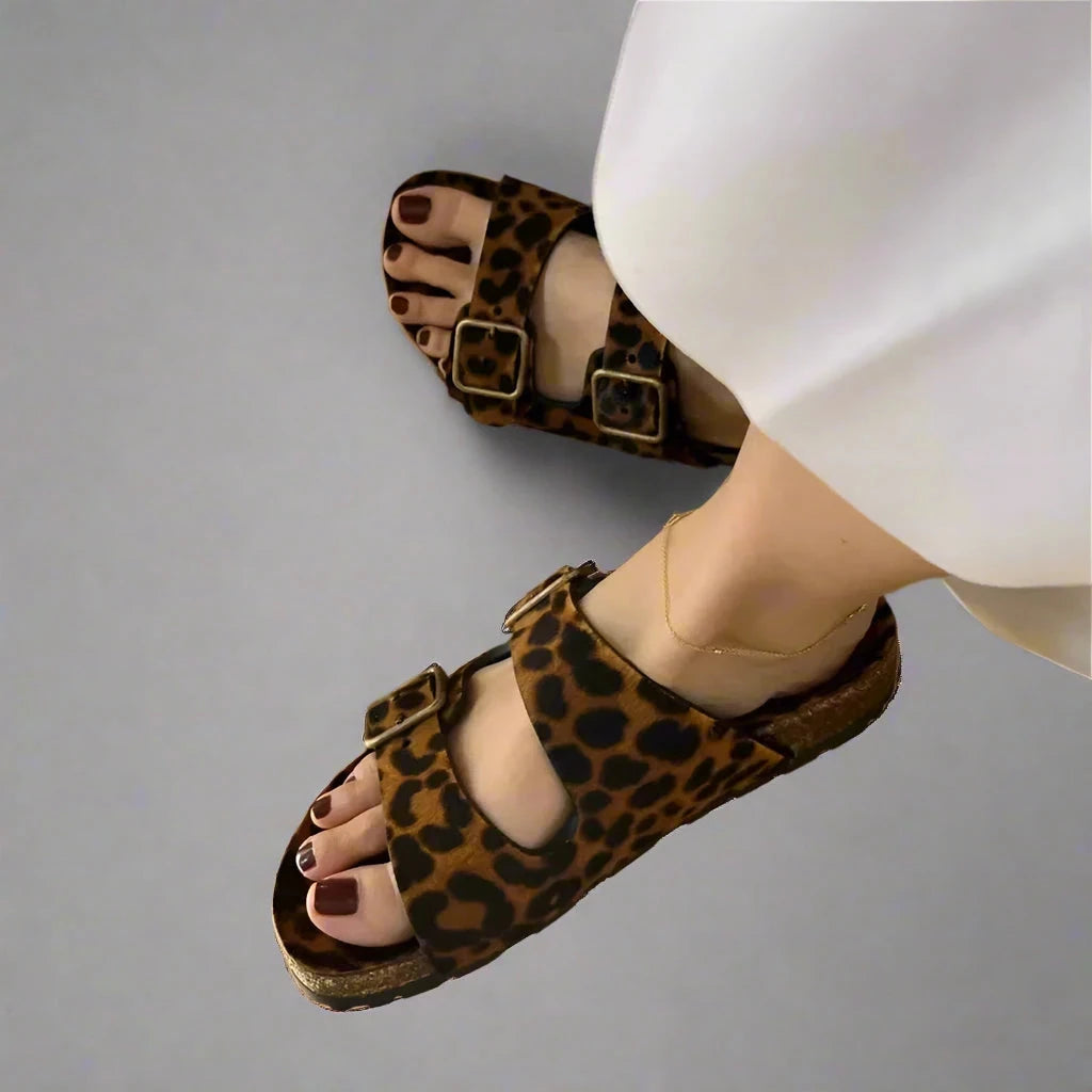 FEDONAS Leopard Buckles Sandals