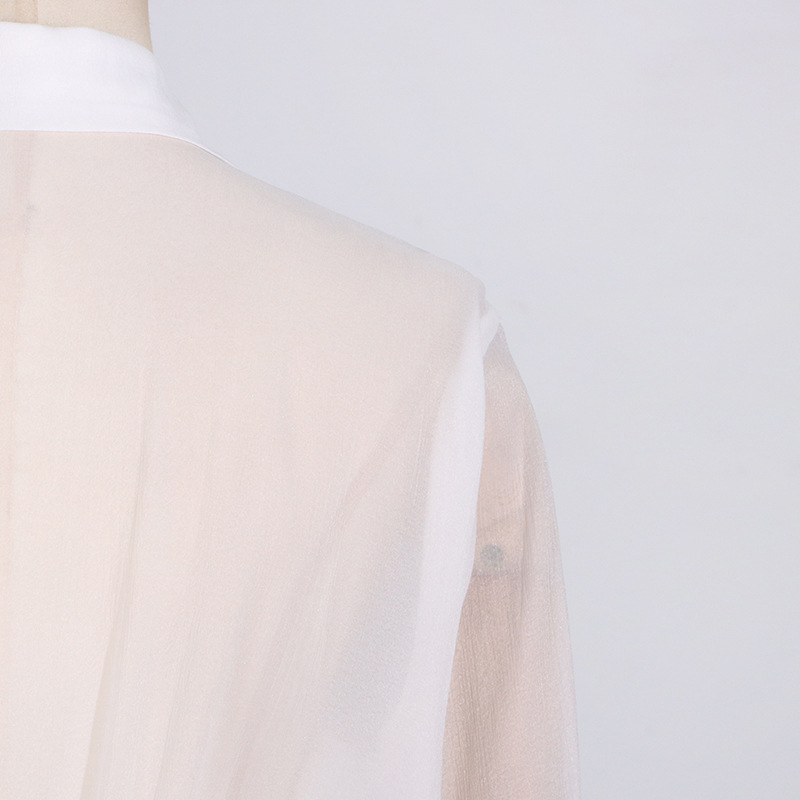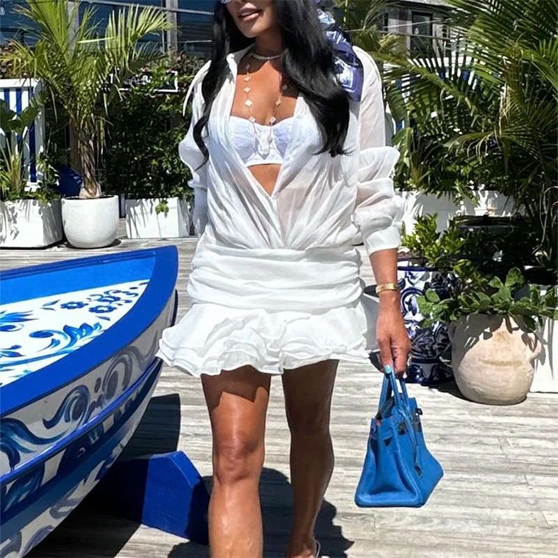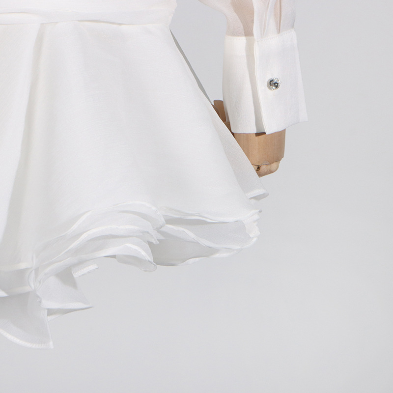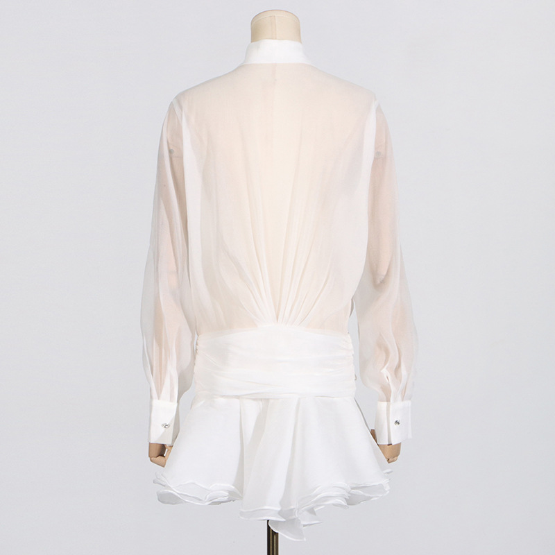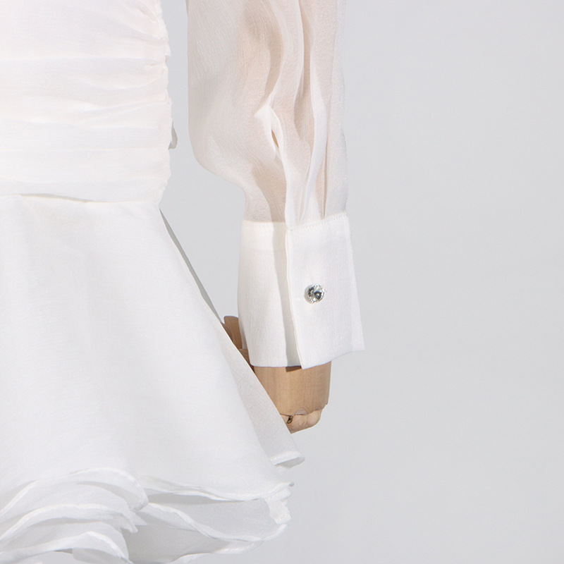 Sheered Pleated Long Sleeve Short Dress