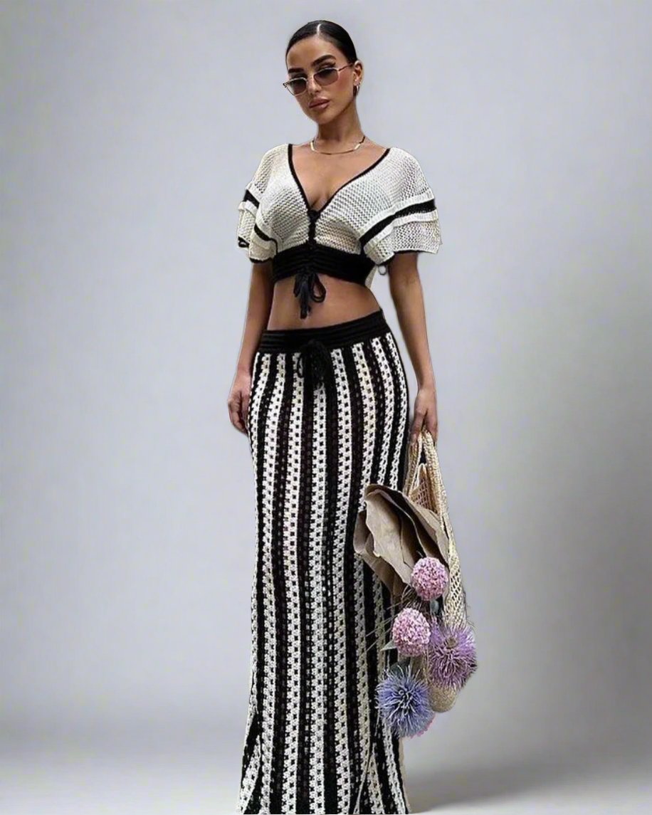 Striped Knitted Skirt Beach Set