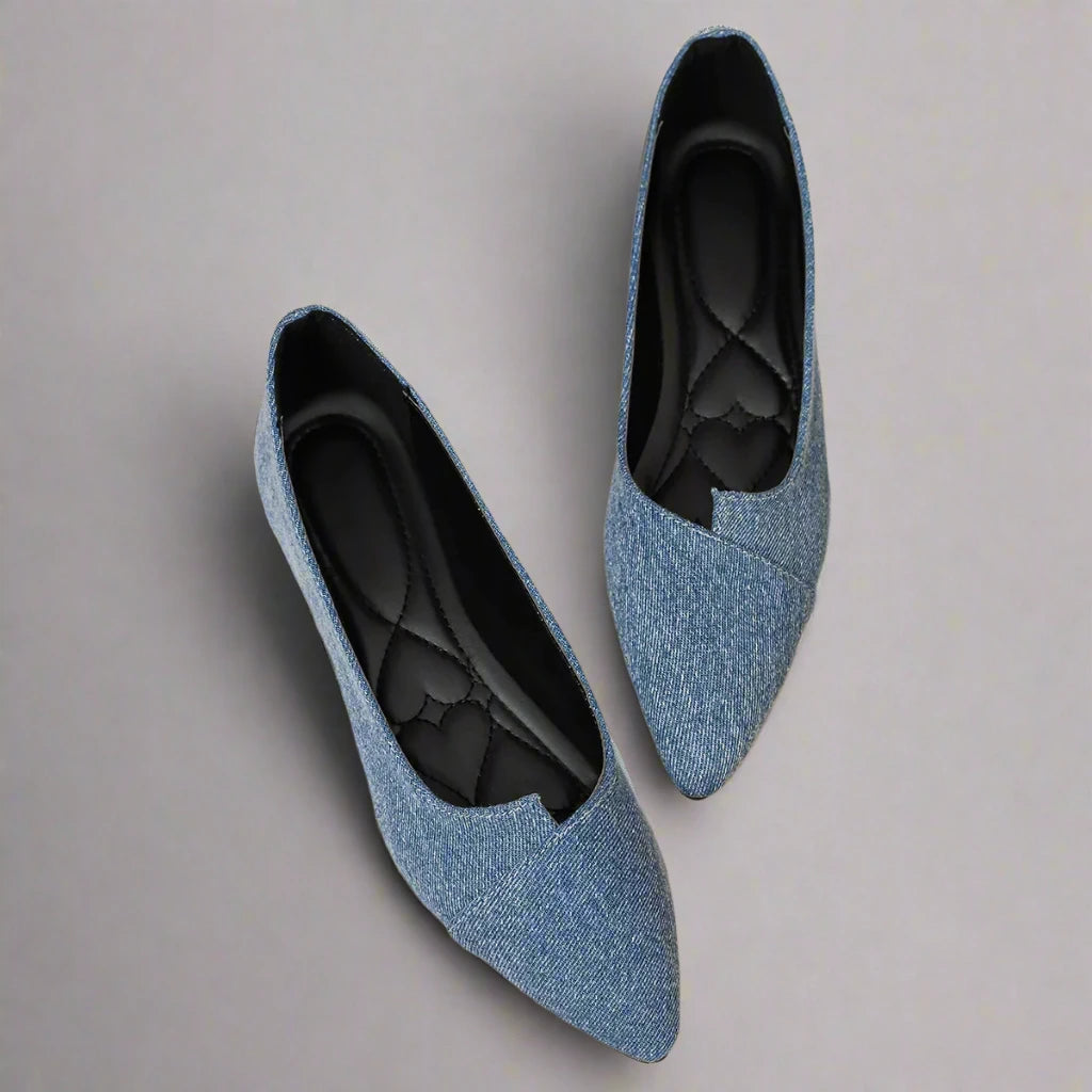 Experience comfort and style with our Denim Flat Shoes. Made with high-quality denim, these shoes offer both durability and a trendy look. Perfect for any occasion, these shoes will elevate your outfit and keep your feet happy all day long. Upgrade your wardrobe with these must-have shoes!